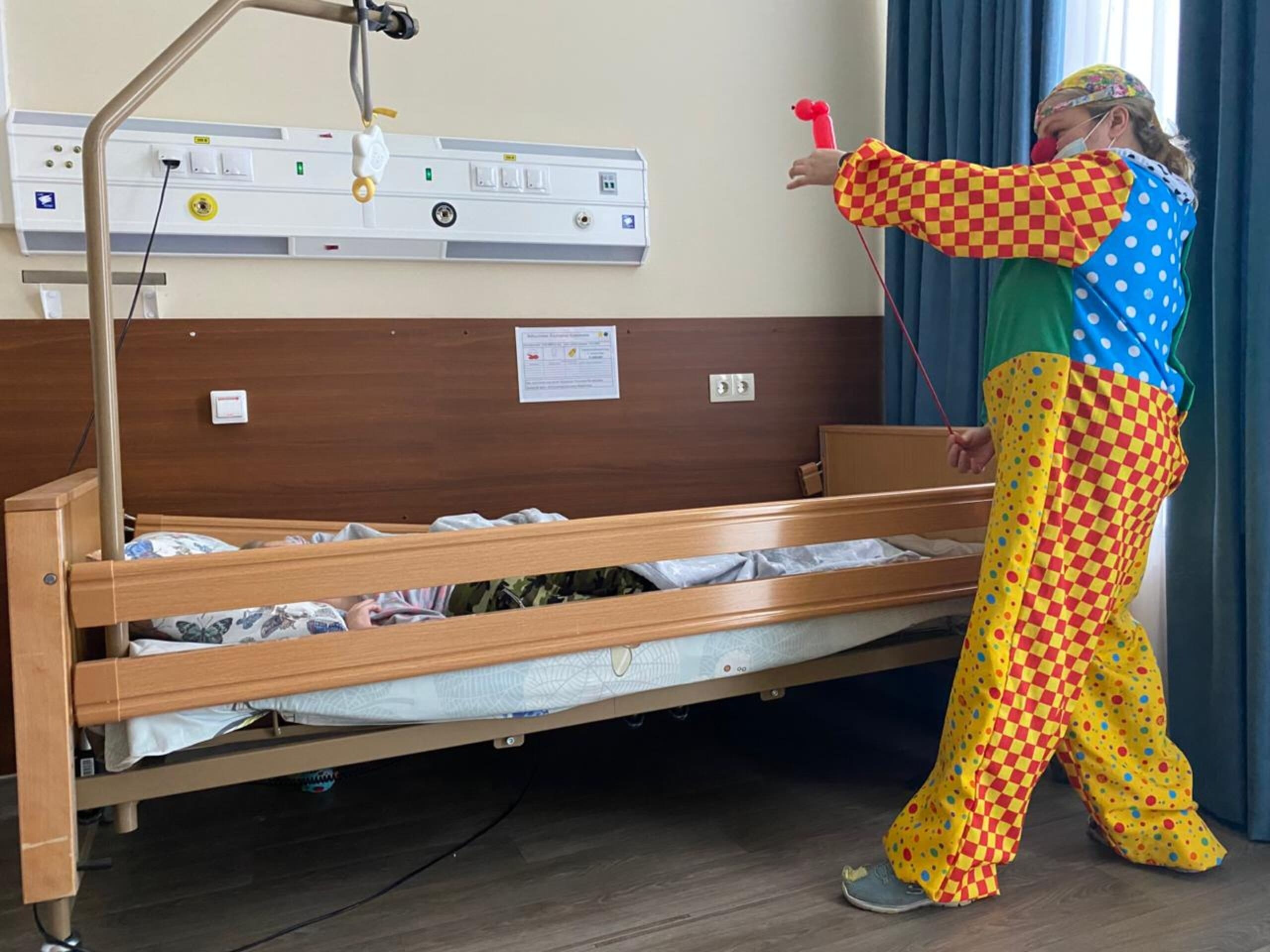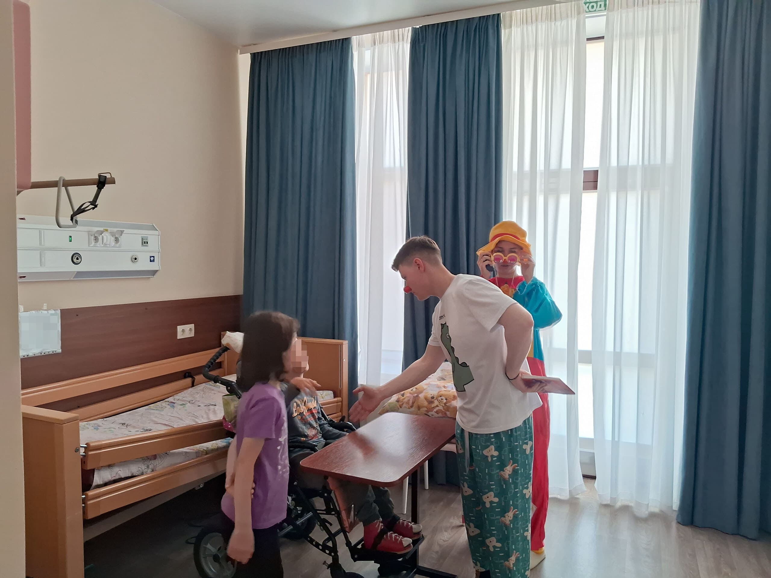 В рамках психологического направления проекта детское отделение ежемесячно посещают смехотерапевты – больничные клоуны. Визиты больничных клоунов в хоспис – это всегда долгожданный праздник для детей. Они с большим интересом включаются в игры и сюжеты, придумывают свои. Дети любят смотреть фокусы, просят сделать фигурки из шариков, любят, когда им поют забавные песенки, когда клоун может просто посидеть с ним рядом, обнять. И после завершения проекта специалисты и смехотерапевты продолжат посещать детей и взрослых в Уфимском хосписе.